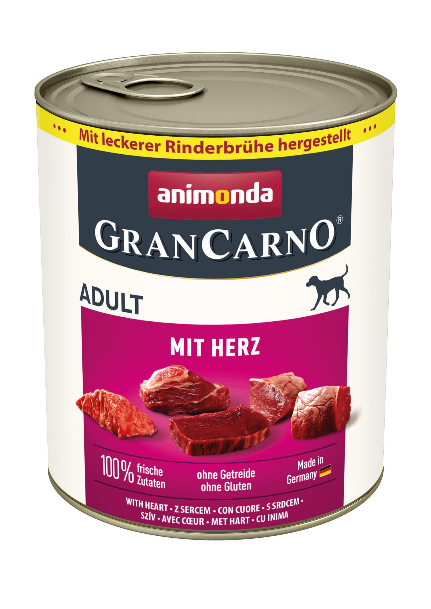 GranCarno® Adult mit Herz ist für alle ausgewachsenen Hunde geeignet, ganz gleich, ob es sich bei Ihrem pelzigen Begleiter um eine grosse oder eine kleine Rasse handelt. Wir haben diese Rezeptur mit Blick auf ihre speziellen Bedürfnisse entwickelt, um eine optimale Gesundheit und Vitalität zu gewährleisten.