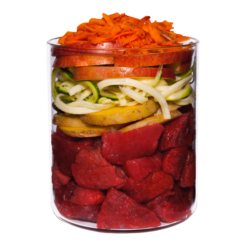 Terra Canis GETREIDEFREI-Menüs weisen einen hohen Fleischanteil von 60 % – 70 % auf, ergänzt durch viel gesundes, ballaststoffreiches Gemüse, Obst und Kräuter. Zusätze wie Seealge, Mineralerde, Blütenpollen und Bierhefe liefern zahlreiche, natürliche Vitamine und Mineralstoffe. Das enthaltene hochverdauliche, cholesterin- und glutenfreie Kokosmehl ist ein wahres Wundermehl. Es gilt als eine der ergiebigsten Ballaststoffquellen, ist sanft zum Darm und enthält ein breites Angebot an wichtigen Aminosäuren. Rapsöl mit seinem hohen Gehalt an Omega-3-Fettsäuren rundet die GETREIDEFREI-Menüs ideal ab. Geeignet sind diese Menüs für alle gesunden Hunde, deren Halter auf eine artgerechte, getreidefreie Ernährung setzen. Besonders geeignet für Hunde mit Unverträglichkeiten gegen Getreide sowie für Hunde, die aus medizinischen Gründen getreidefrei ernährt werden sollten.