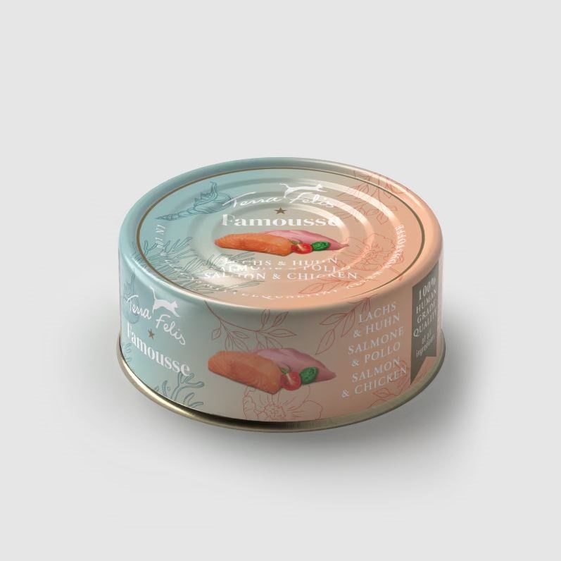Famousse chat s. céréales saumon+poulet 80g