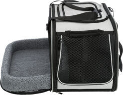 ' Un foyer loin de son foyer ' - Notre nouveau sac de voyage et de transport Valery (art. #28901) offre une multitude d'avantages aux animaux et à leurs maîtres. Le sac peut être utilisé comme abri douillet à la maison. Ainsi, l'animal s'habitue au sac dans un environnement familier et s'y sent en sécurité lorsque vous partez en voyage. L'insert du lit douillet peut être retiré au niveau du sol, ce qui facilite, par exemple, les visites chez le vétérinaire. Valery offre aux animaux et aux maîtres un moyen de transport confortable, doté d'un coin repos protégé pour votre animal lorsque vous êtes en déplacement, en particulier pour les chats. Développé avec un vétérinaire spécialiste des chats.