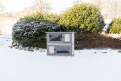 Nos clapiers et enclos pour petits animaux sont traités avec une lasure non toxique et bénéficient ainsi d'une protection optimale contre les intempéries. Pour maintenir cette protection, nous recommandons de peindre le bois tous les 1 à 3 ans avec une lasure ou une peinture pour bois non toxique (à base d'eau, adaptée à l'extérieur).